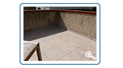 Sanierte Dachterrasse Sanierung einer Dachterrasse mit Feinsteinplatten auf Stelzlager (vorher/nachher) |