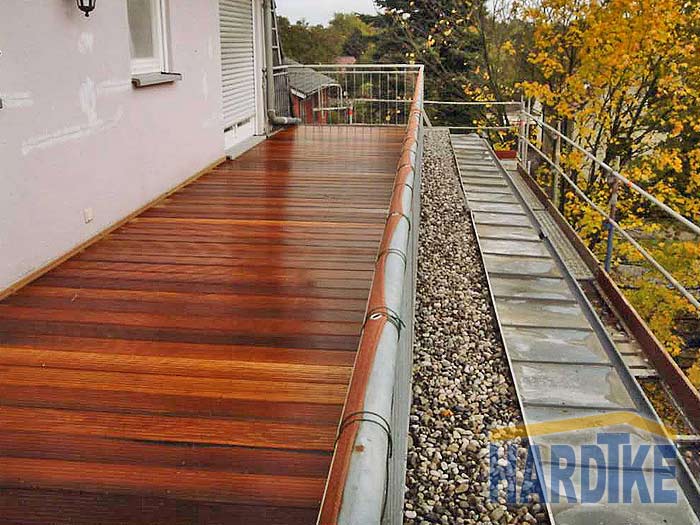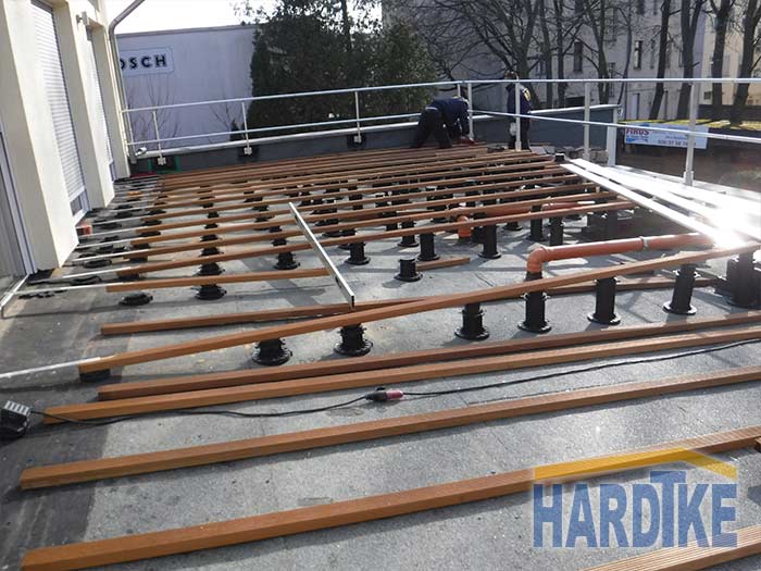 | Dachterrasse Herstellung einer Dachterrasse mit Bankirai-Dielen auf Stelzlager |