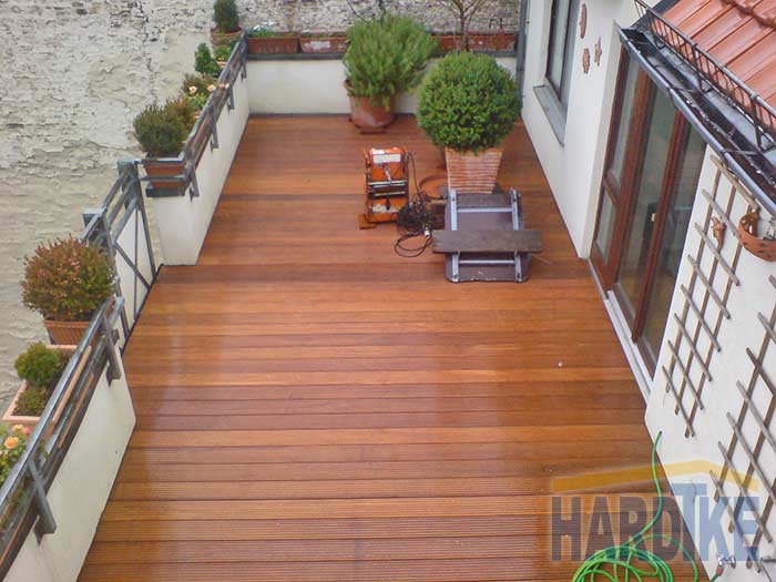 Dachterrasse mit Bankirai-Dielen als Bodenbelag |