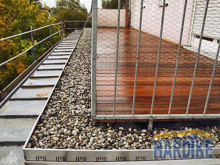 Dachterrasse Balkon Bodenbelag auf Stelzlager - Feinstein 20 mm - Bankirai-Dielen 24 mm |