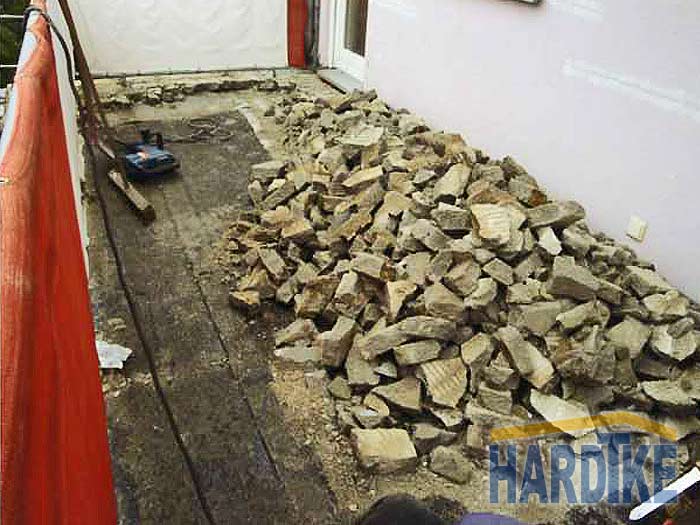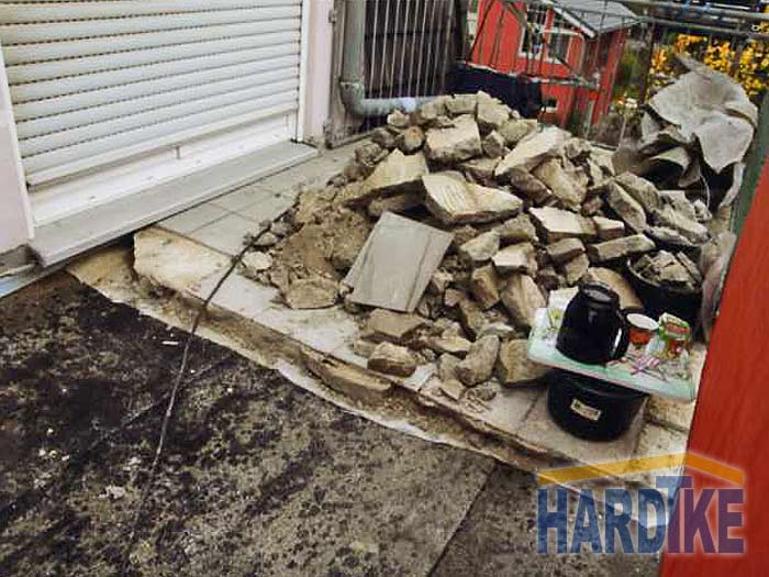 Terrassen Bodenfliesen mit Estrich aufbrechen |