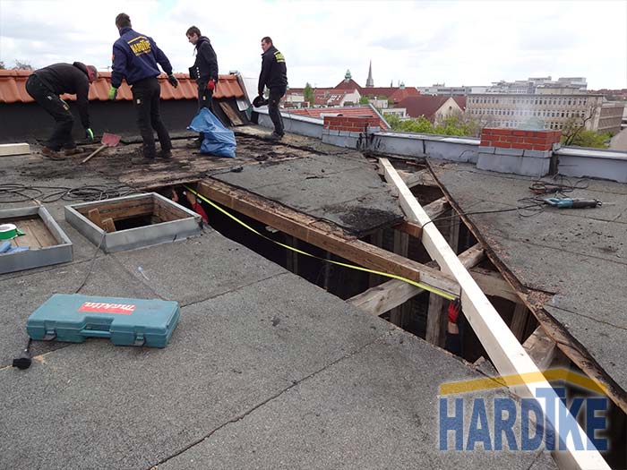 Flachdach-Sanierung mit Austausch defekter Holzbalken |